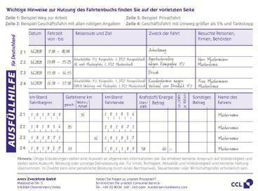 | Ausführung der Lieferzusammenstellung | inkl. steuerlicher km-Nachweis, Jahresabrechnung |