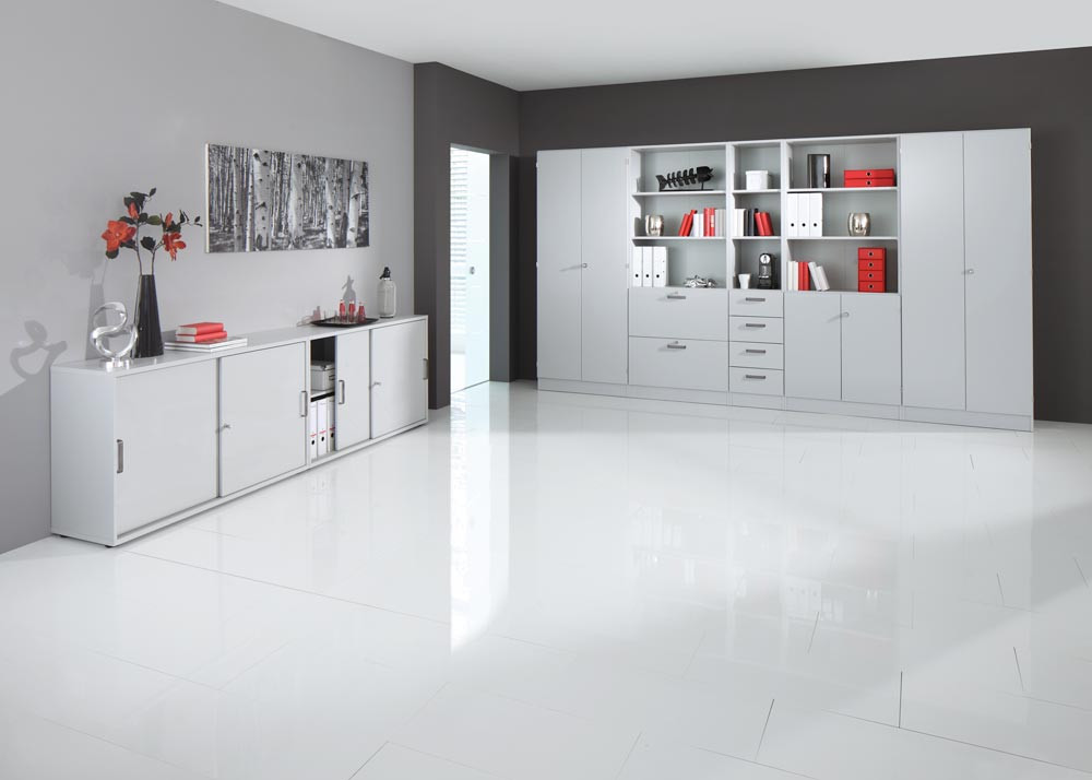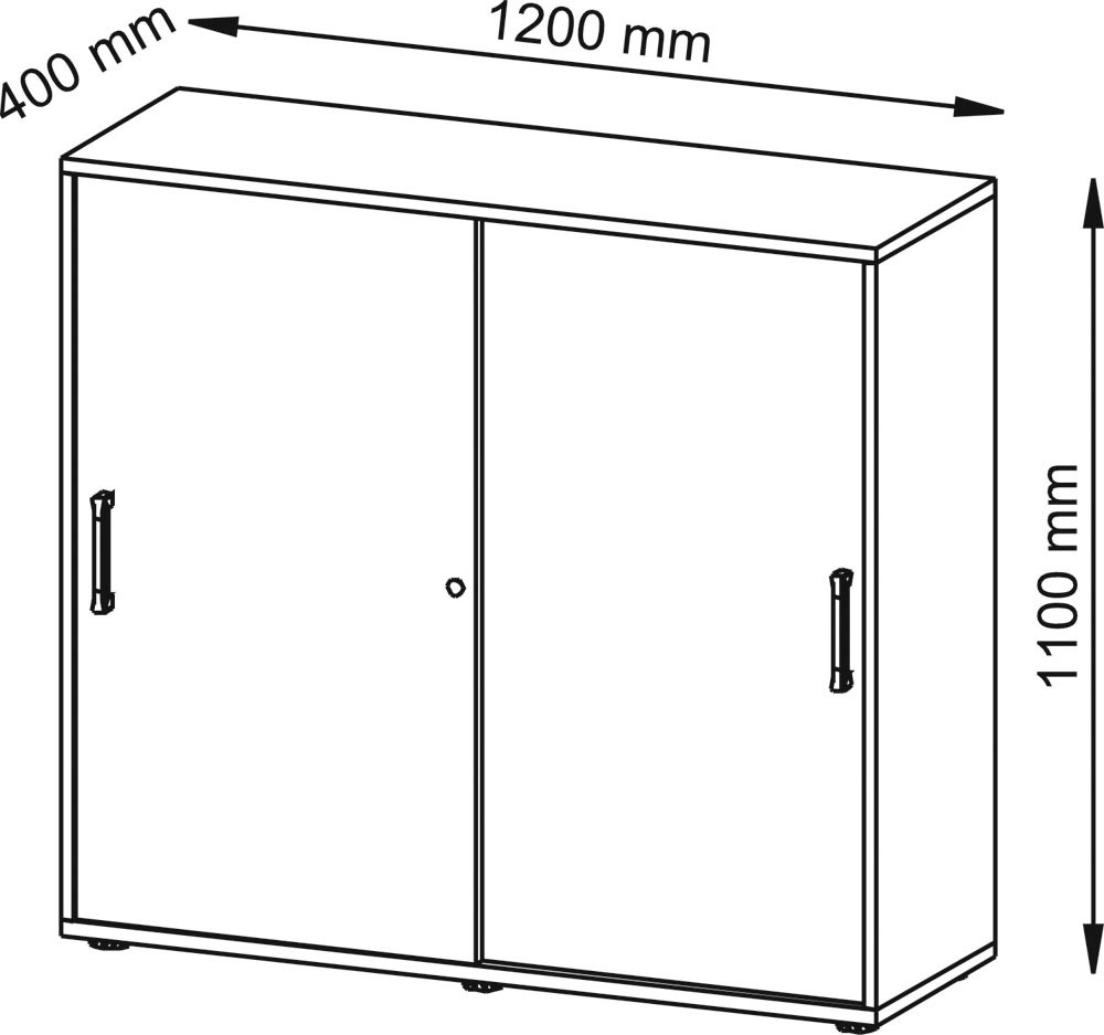 Büro-Schiebetürenschrank, BxTxH 1200x400x748 mm, 2 OH, 1 Boden, Schloss, weiß E1981036