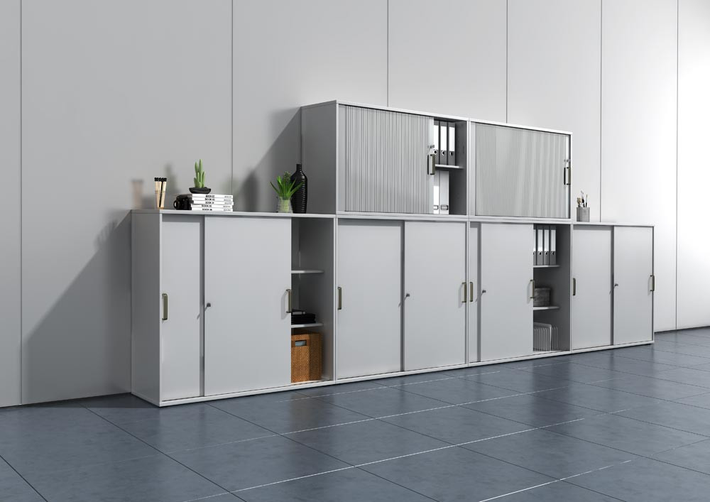 Büro-Schiebetürenschrank, BxTxH 1200x400x748 mm, 2 OH, 1 Boden, Schloss, lichtgrau E1981033