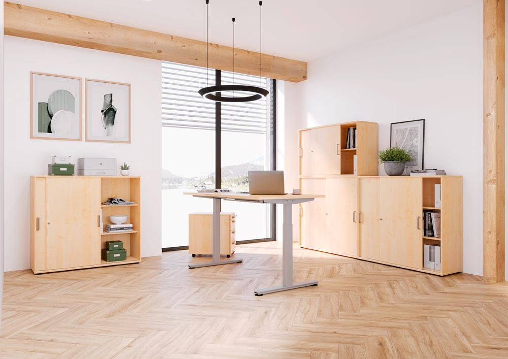 Büro-Schiebetürenschrank, BxTxH 1200x400x748 mm, 2 OH, 1 Boden, Schloss, ahorn E1981034