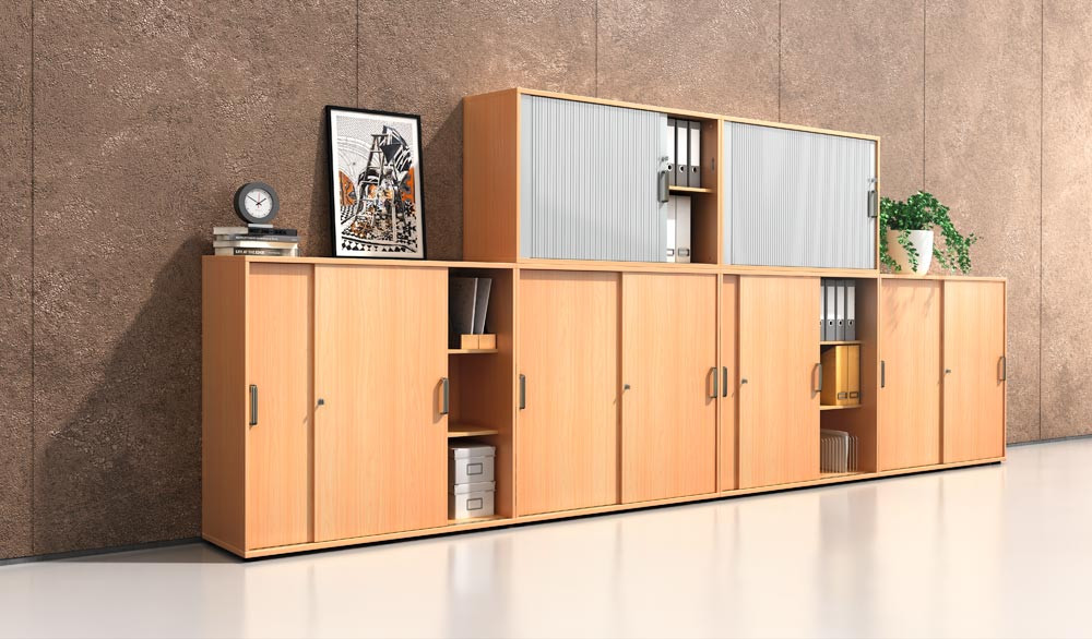 Büro-Schiebetürenschrank, BxTxH 1200x400x748 mm, 2 OH, 1 Boden, Schloss, buche E1981035