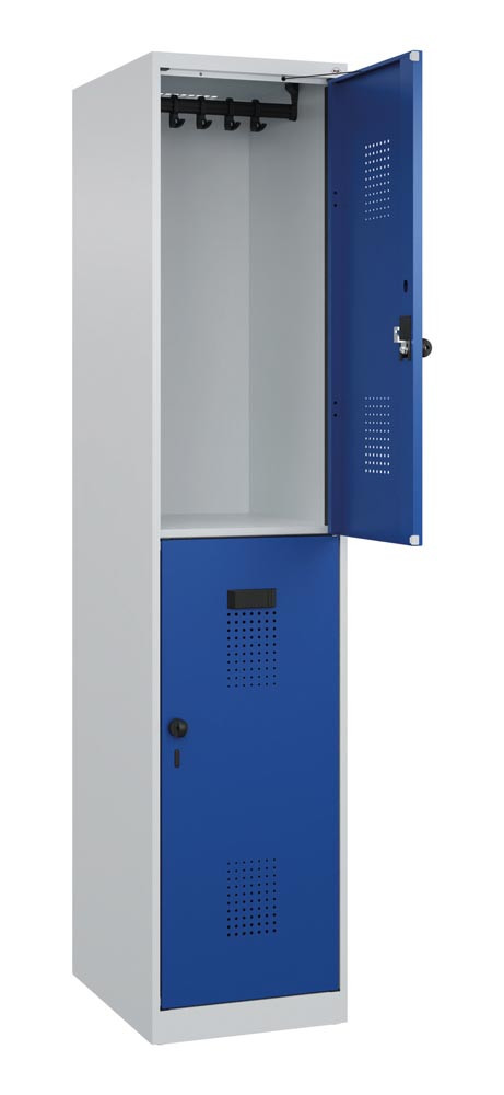 Fächerschrank, Stahl, doppelstöckig, 1x2 Fächer, Abt.B 400 mm, bodenstehend, Drehriegel, BxTxH 400x500x1850 mm, RAL 7035/5010