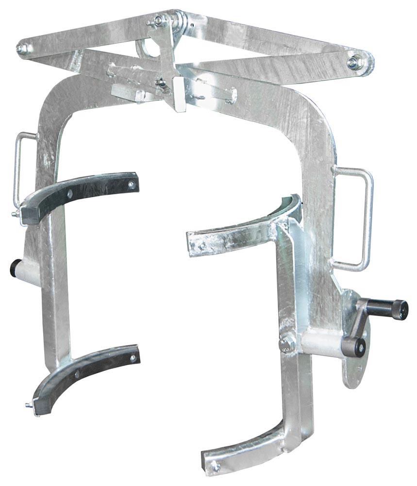 ∙ Zum vertikalen und horizontalen Heben und Transportieren von Stahl-Spundfässern und Stahl - Deckelfässern ∙ Auswechselbarer Gummianschlag zur Vermeidung von Fassbeschädigungen ∙ Arretierhebel sichert Offenstellung ∙ Kippstellung über Schalthebel wählbar