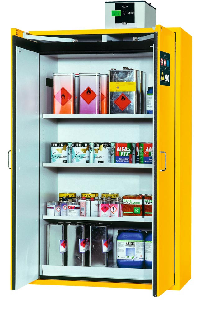 ∙ Zur vorschriftsmäßigen Lagerung von Gefahrstoffen in Arbeitsräumen gemäß DIN EN 14470-1 (Typ 90) und TRGS 510 Anhang 1