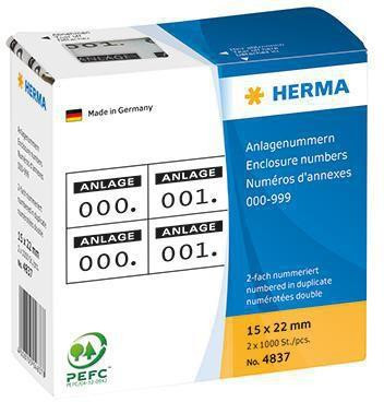 HERMA Nummernetikett 15 x 22 mm (B x H) doppelt Papier weiß Anlage/0-999 1.000 Etik./Pack.