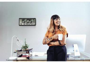 DCF-Funkuhr mit automatischer Zeitanpassung an die genaueste Uhr der Welt. Dank extragroßer Zeitanzeige mit einem Blick wissen · wieviel Uhr es ist. Displayanzeige in Stunden · Minuten und Sekunden. Uhrzeit umschaltbar 12-/24-h-Format. Die Zeitzone lässt sich manuell einstellen · wenn sich die DCF-Zeit von der Zeitzone unterscheidet. Bei Nichtgebrauch kann das DCF-Funksignal komplett abgeschaltet werden. Mit Batteriekapazitätsanzeige und automatischem Wechsel von Winter zur Sommerzeit. Thermometer: Messbereich innen: 0- 50°C · umschaltbar zwischen Grad Celsius und Fahrenheit. Hygrometer: Messbereich innen: 20-95 %. Dank ausklappbarem Standfuß auch als Tischuhr verwendbar.