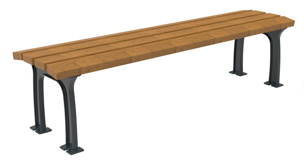 Parkbank ohne Rückenlehne, mit Bambus Savanna Belattung, Füße mobil aus Aluminiumguss, BxTxH 1770x466x458 mm