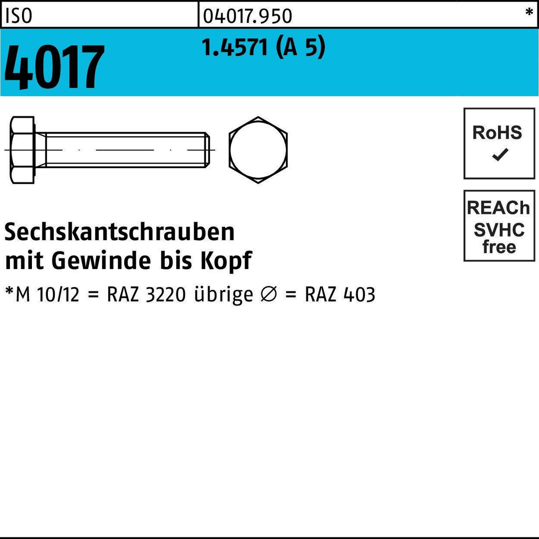 ISO 4017 1.4571 (A 5) Sechskantschrauben mit Gewinde bis Kopf - Abmessung: M 10 x 20 VE=S (1 Stück )