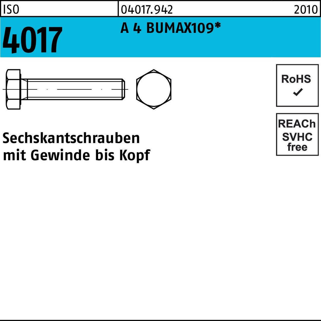 Sechskantschraube ISO 4017 VG M6x 16 A 4 BUMAX109 100 Stück BUFAB