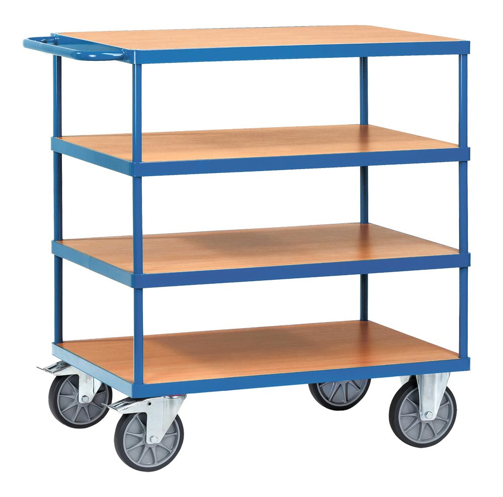 Tischwagen, 4 Ladeflächen LxB 1000x700 mm, Außenmaße LxBxH 1197x709x1218 mm, Traglast 600 kg, RAL 5007 brillantblau