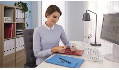 Innovativer · nachfüllbarer tesa® Easy Cut® Handabroller im ergonomischen Design. Besonders einfach nachzufüllen. Mit praktischem Sichtfenster.