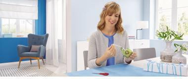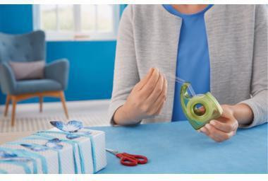 Innovativer · nachfüllbarer tesa Handabroller Easy Cut® ecoLogo® in ergonomischem Design für präzisen Schnitt und hohe Funktionsleistung.