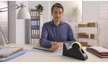 Praktischer Alltagshelfer für Büro und Haushalt. Er überzeugt durch seine robuste und stabile Bauweise und lässt sich einhändig bedienen. Das Messer des Tischabrollers sorgt für einen sauberen Schnitt · sodass die Verarbeitung von tesafilm®-Rollen zum Kinderspiel wird. Der praktische Tischabroller wird besonders gern zum Verpacken von Geschenken · aber auch zum Befestigen und Dekorieren verwendet.
